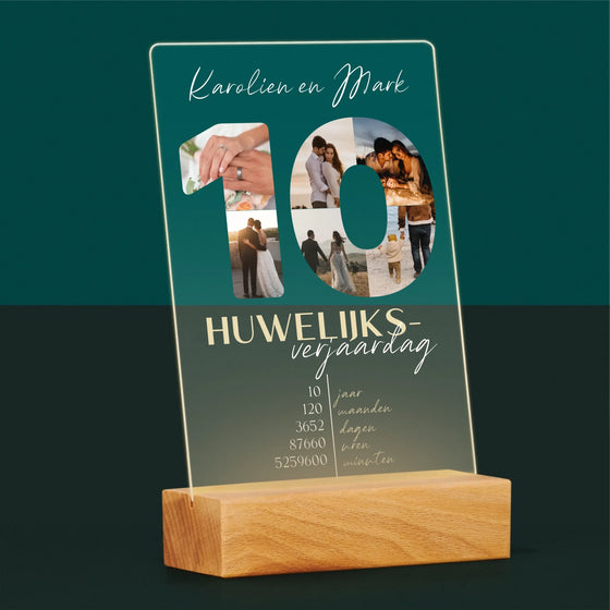 €19,99Eenheid prijs /Niet beschikbaarFotocollage: 5De Huwelijksverjaardag - Afdruk op acrylglas met LED