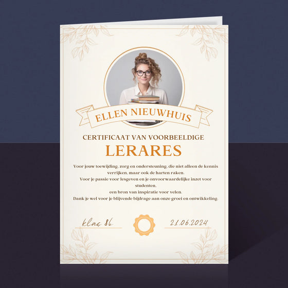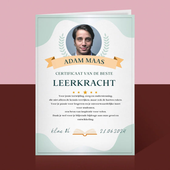 Foto En Handtekening: Certificaat Van De Beste Leerkracht - Wenskaart