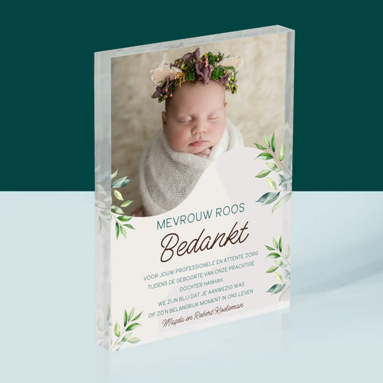 €29,99Eenheid prijs /Niet beschikbaarFoto En Handtekening: Bedankt Aan De Vroedvrouw - Acryl blok - Verticaal