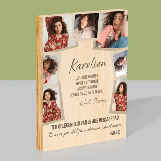 €29,99Eenheid prijs /Niet beschikbaarFotocollage: Maak Je Dromen Waar - Afdruk op hout