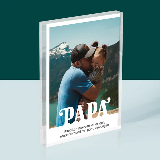 €29,99Eenheid prijs /Niet beschikbaarFoto En Handtekening: Onvervangbare Papa, Toewijding - Acryl blok - Verticaal