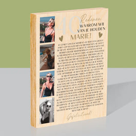 €18,99Eenheid prijs /Niet beschikbaarFotocollage: 40 Redenen - Afdruk op hout