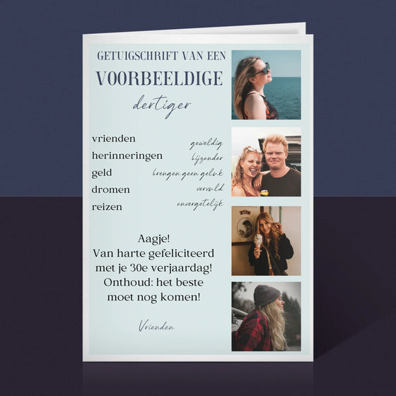 €5,99Eenheid prijs /Niet beschikbaarFotocollage: Getuigschrift Van Een Voorbeeldige Dertiger - Wenskaart