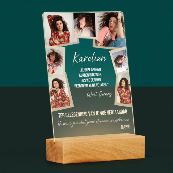 €19,99Eenheid prijs /Niet beschikbaarFotocollage: Maak Je Dromen Waar - Afdruk op acrylglas met LED