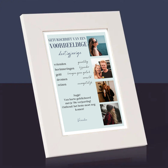 €19,99Eenheid prijs /Niet beschikbaarFotocollage: Getuigschrift Van Een Voorbeeldige Dertiger - Fotokader