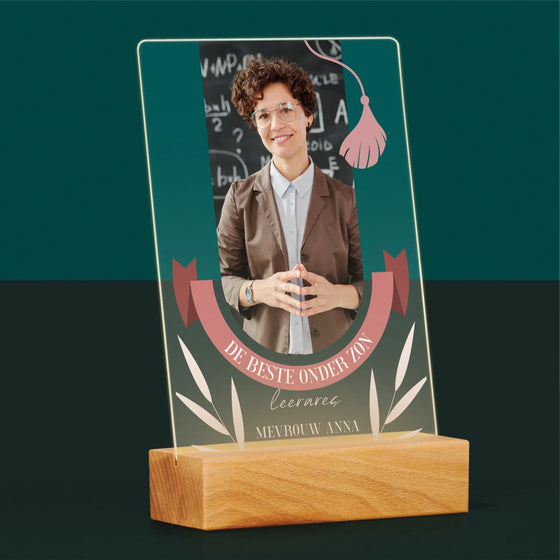 €19,99Eenheid prijs /Niet beschikbaarFoto En Handtekening: De Beste Leerares Onder Zon - Afdruk op acrylglas met LED