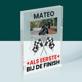€29,99Eenheid prijs /Niet beschikbaarFoto En Handtekening: Als Eerste Bij De Finish - Acryl blok - Verticaal