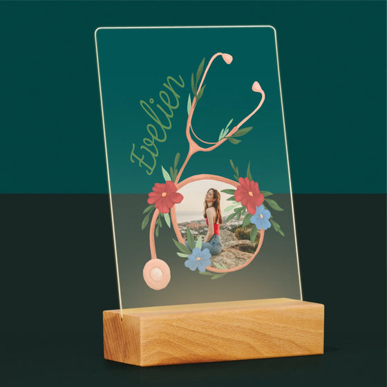 €19,99Eenheid prijs /Niet beschikbaarFoto En Handtekening: Stethoscoop Bloemen - Afdruk op acrylglas met LED