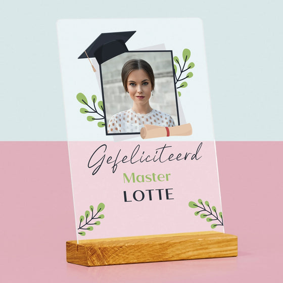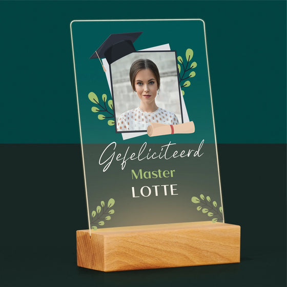 €19,99Eenheid prijs /Niet beschikbaarFoto En Handtekening: Gefeliciteerd, Master - Afdruk op acrylglas met LED