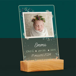 €19,99Eenheid prijs /Niet beschikbaarGeboorteakte Van Kind: Metriek Bloemen - Afdruk op acrylglas met LED