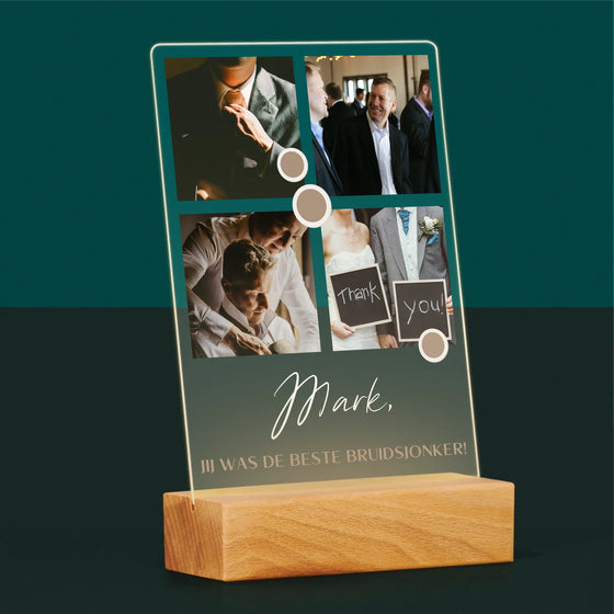 €19,99Eenheid prijs /Niet beschikbaarFotocollage: Bedankt Collage, Bruidsjonker - Afdruk op acrylglas met LED