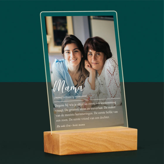 €19,99Eenheid prijs /Niet beschikbaarFoto En Handtekening: Mama Definitie - Afdruk op acrylglas met LED
