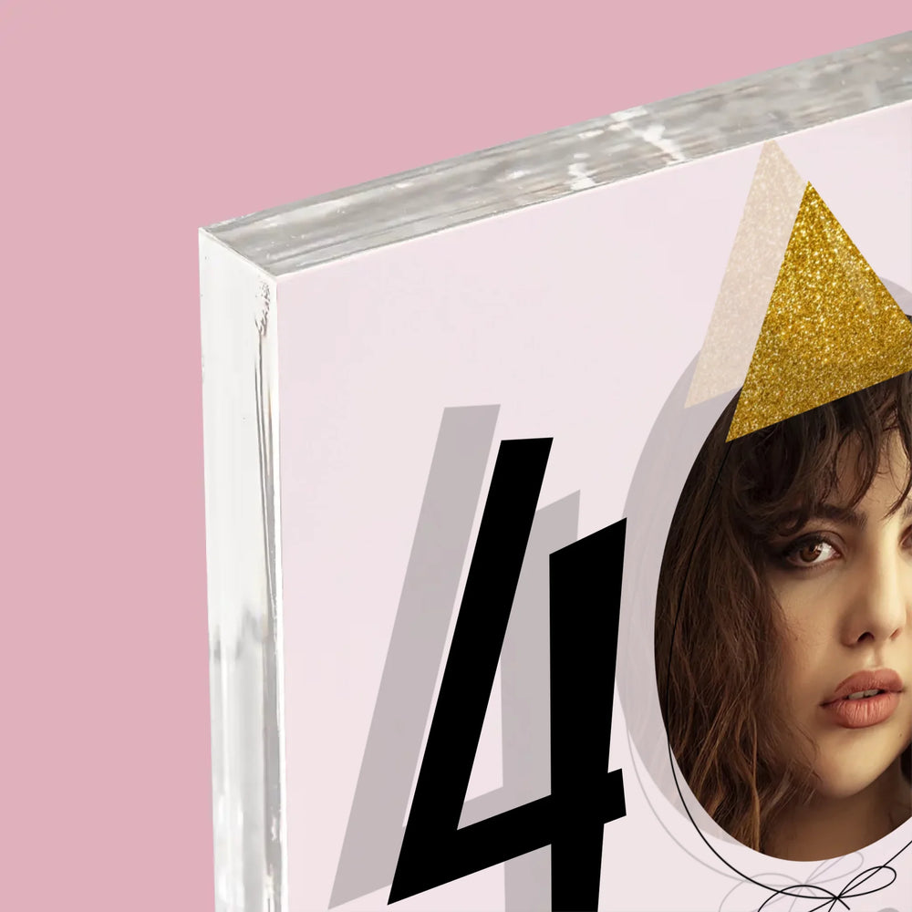 Foto En Handtekening: 40 Verjaardag Pet - Acryl blok - Verticaal
