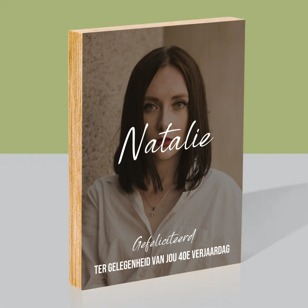 Foto En Handtekening: 40E Verjaardag, Gefeliciteerd - Afdruk op hout