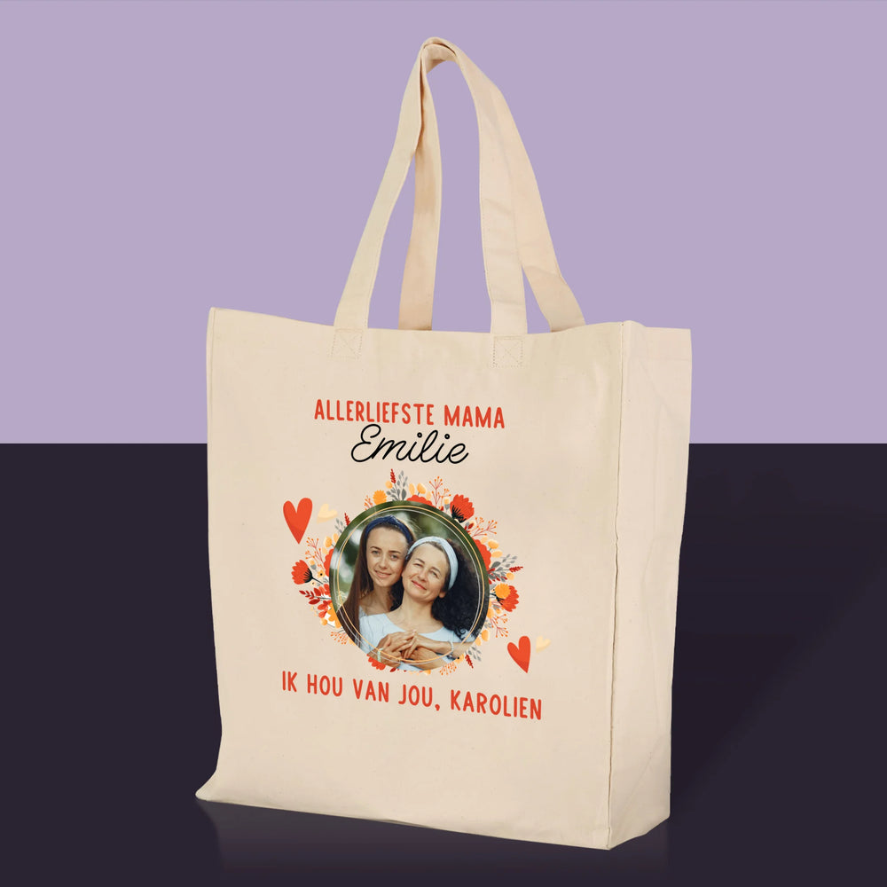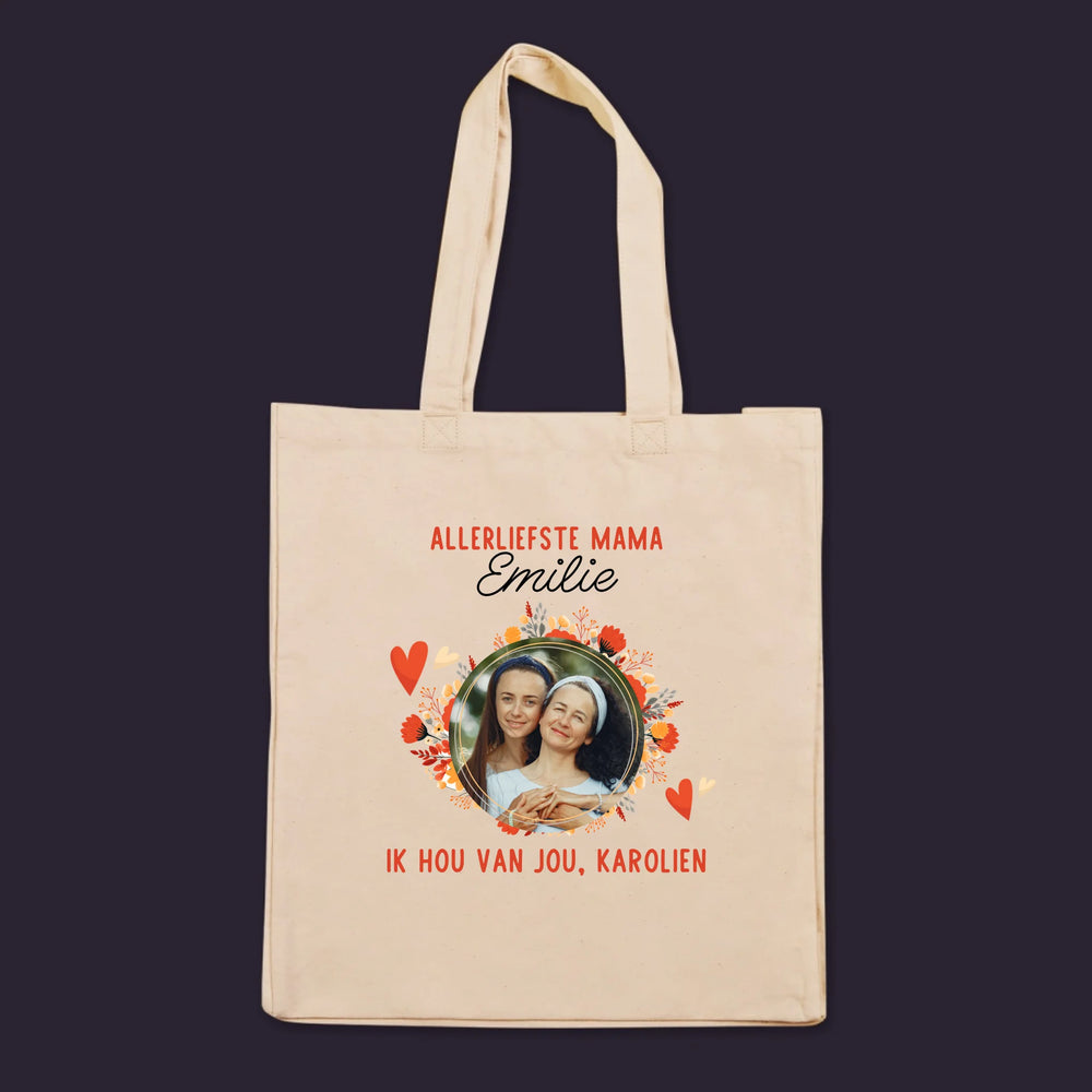 Foto En Handtekening: Allerliefste Mama - Canvas tas