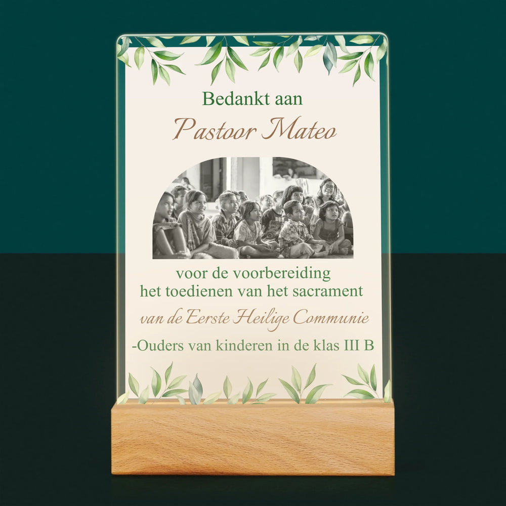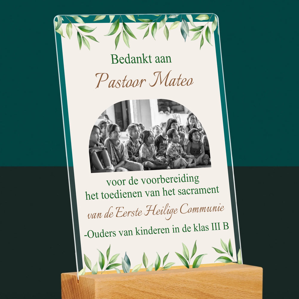 Foto En Handtekening: Bedankt Aan Passtoor, Communnie - Afdruk op acrylglas met LED