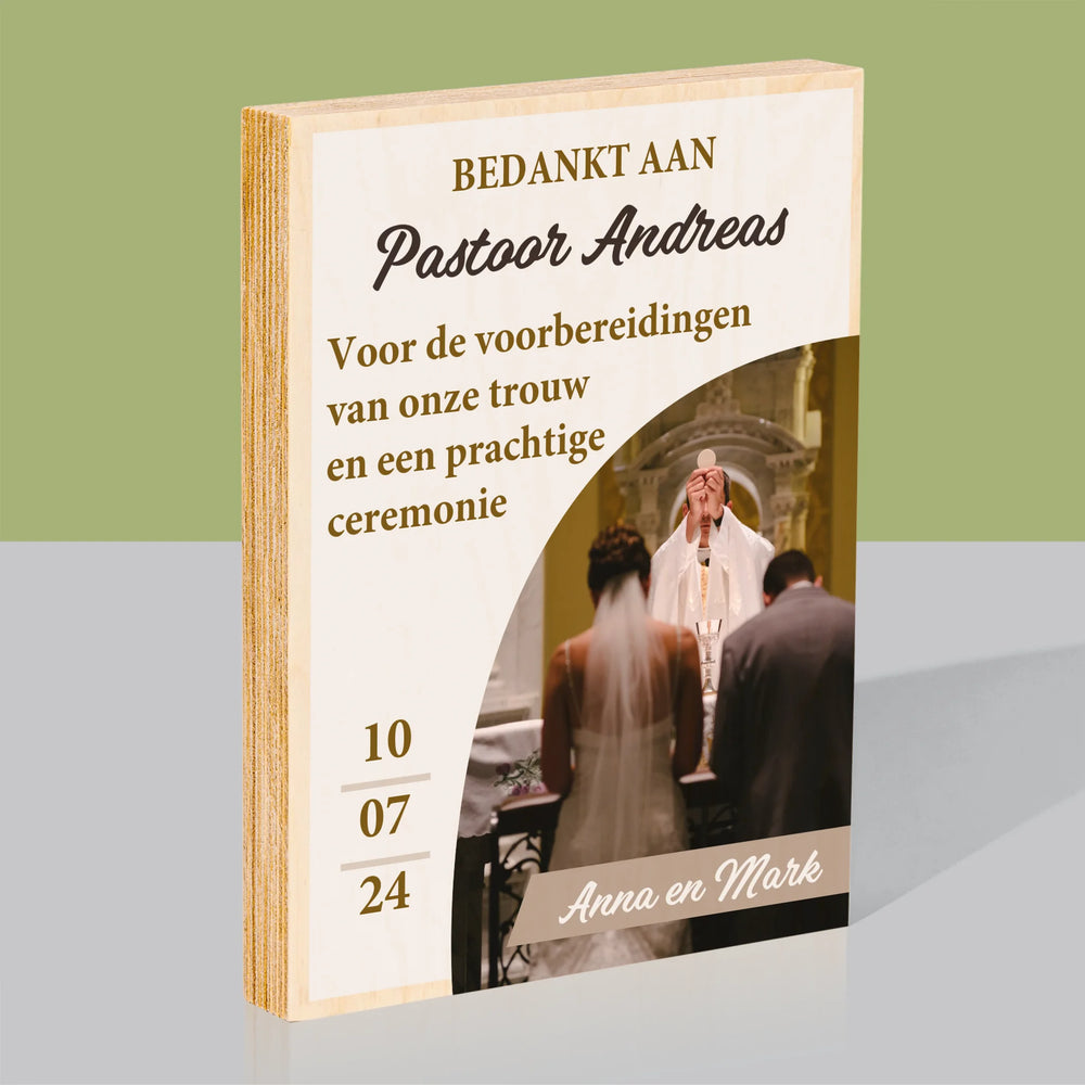 Foto En Handtekening: Bedankt Aan Priester, Trouw - Afdruk op hout