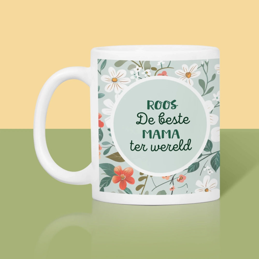 Foto En Handtekening: Beste Mama Bloemen - Mok