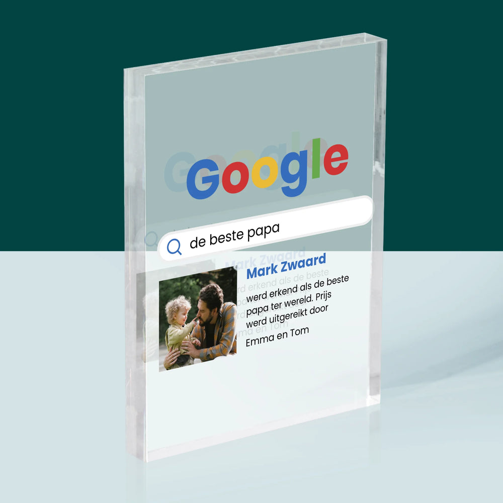 Foto En Handtekening: Beste Papa, Google-Score - Acryl blok - Verticaal