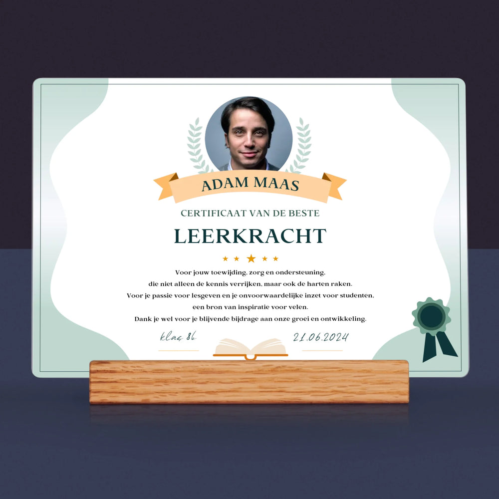 Foto En Handtekening: Certificaat Van De Beste Leerkracht - Afdruk op acrylglas