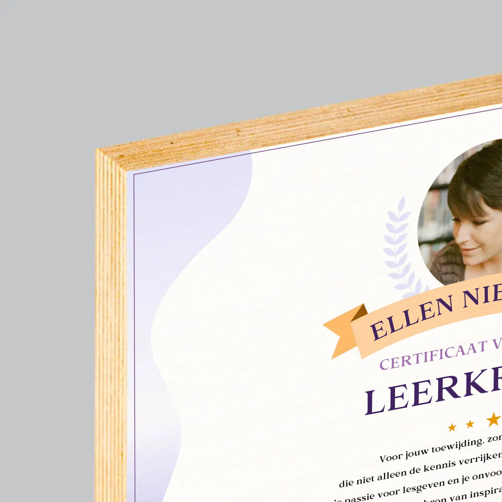 Foto En Handtekening: Certificaat Van De Beste Leerkracht - Afdruk op hout