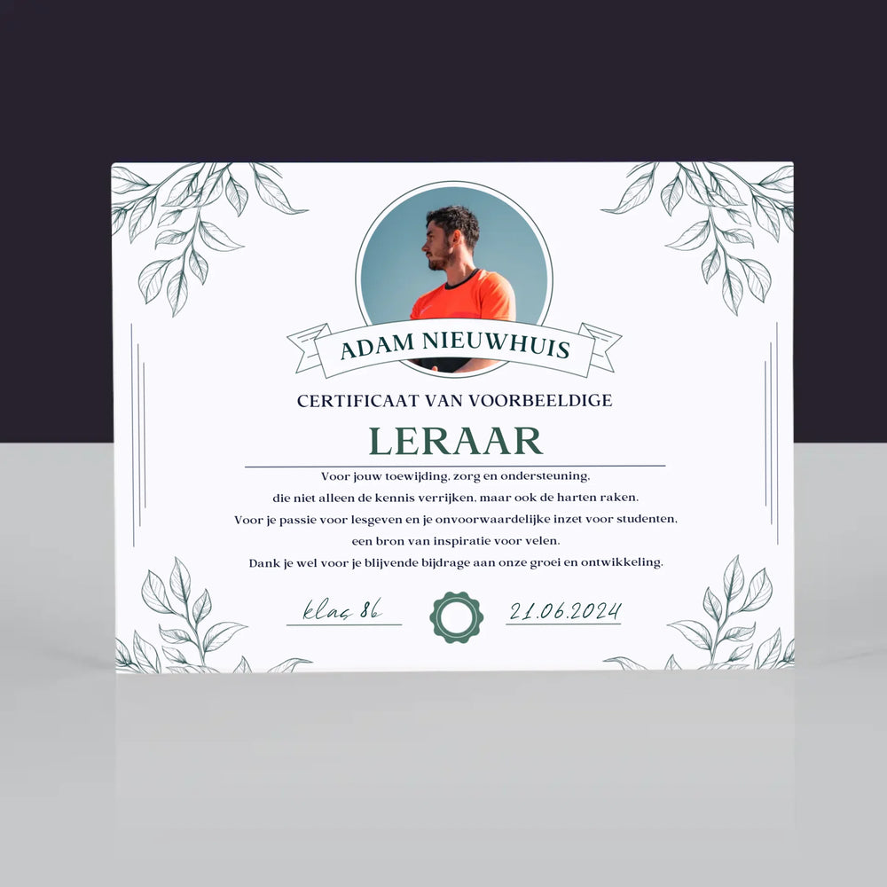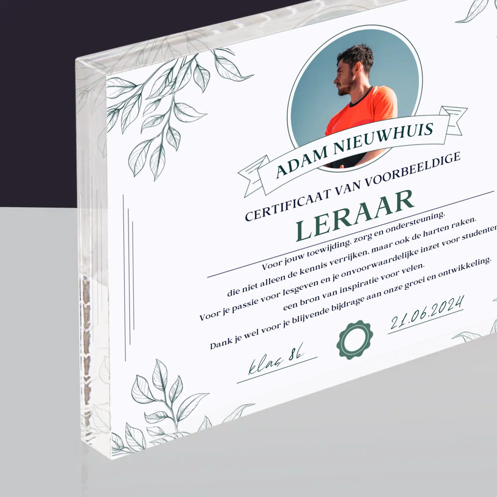 Foto En Handtekening: Certificaat Van Voorbeeldige Leraar - Acryl blok - Horizontaal