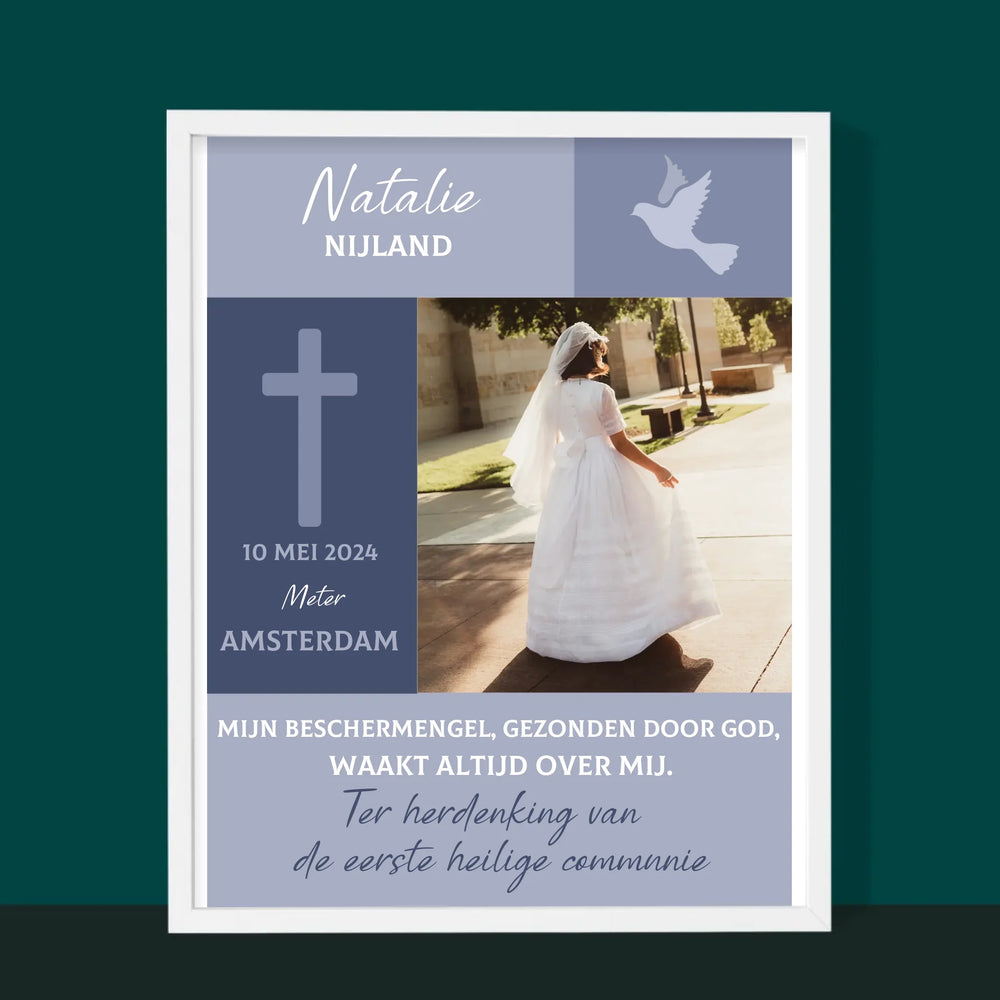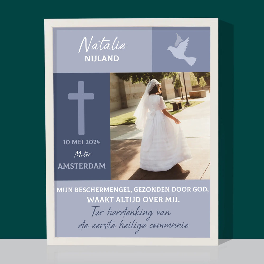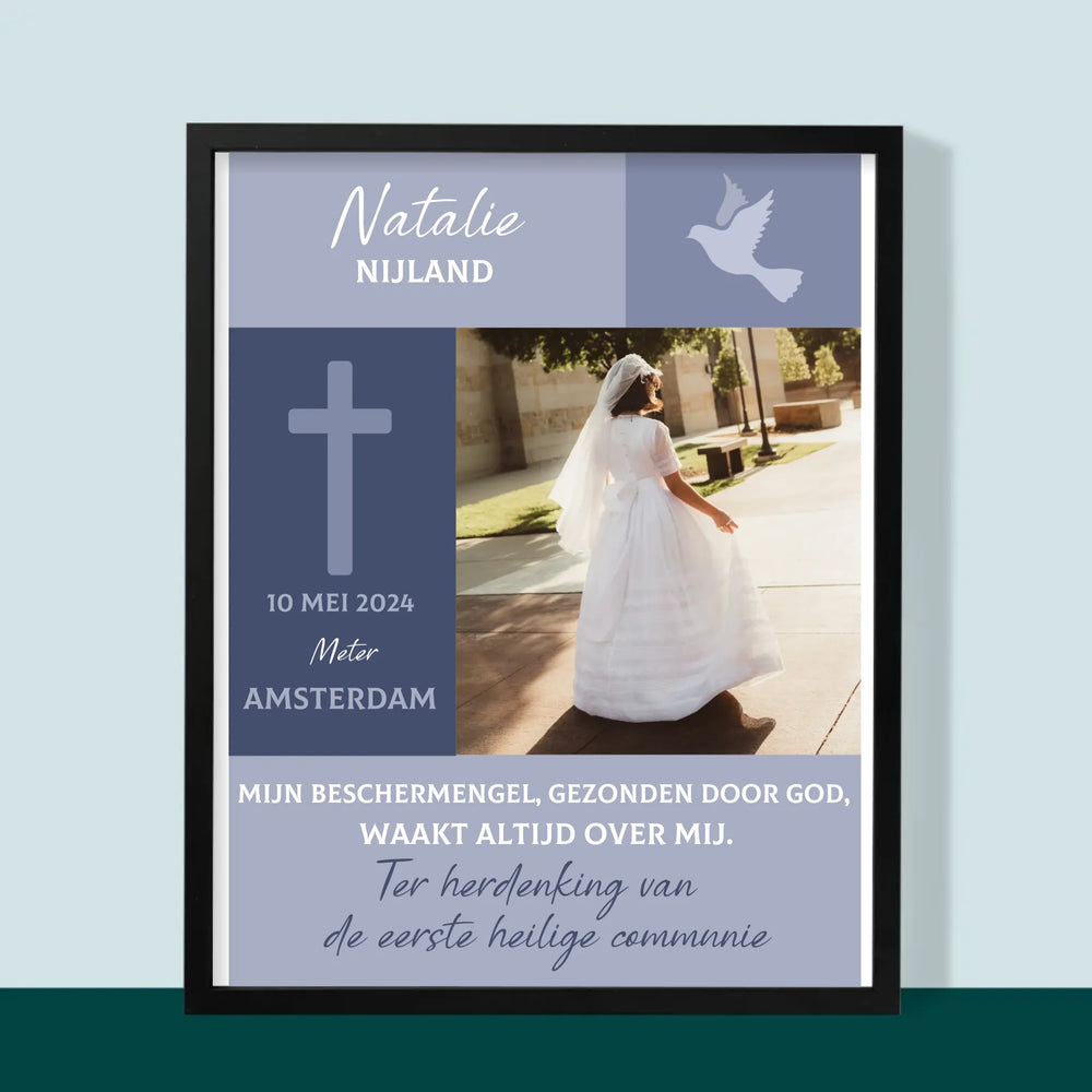 Foto En Handtekening: Communie, Beschermengel - Afdruk met frame