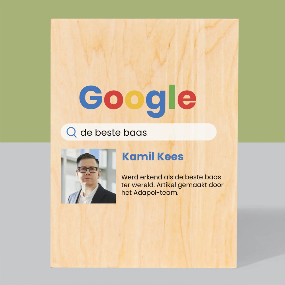 Foto En Handtekening: De Beste Baas Google-Score - Afdruk op hout