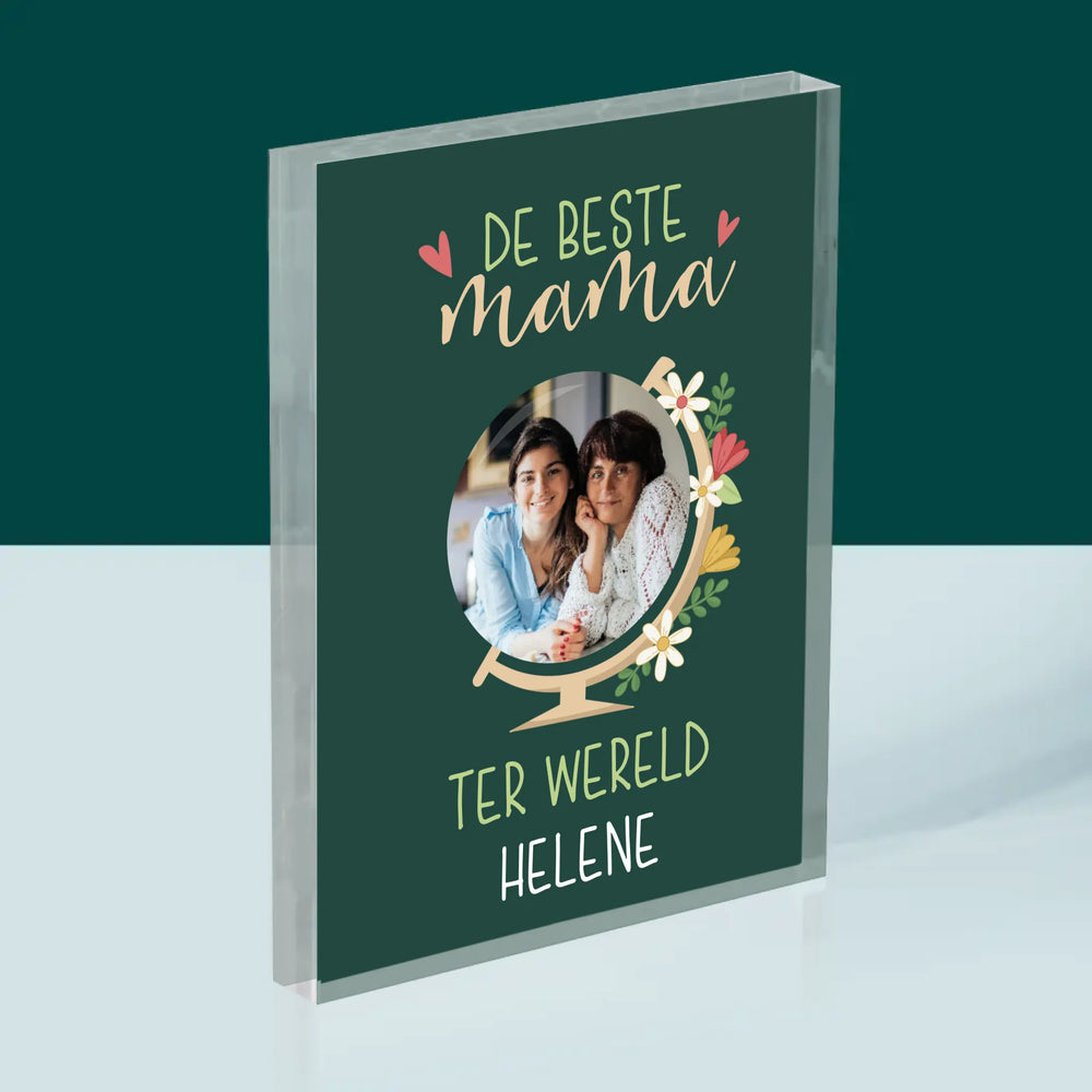 Foto En Handtekening: De Beste Mama Ter Wereld - Acryl blok - Verticaal