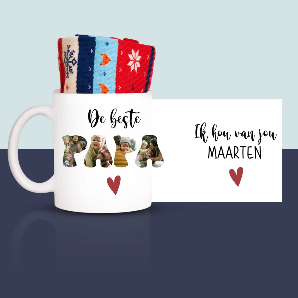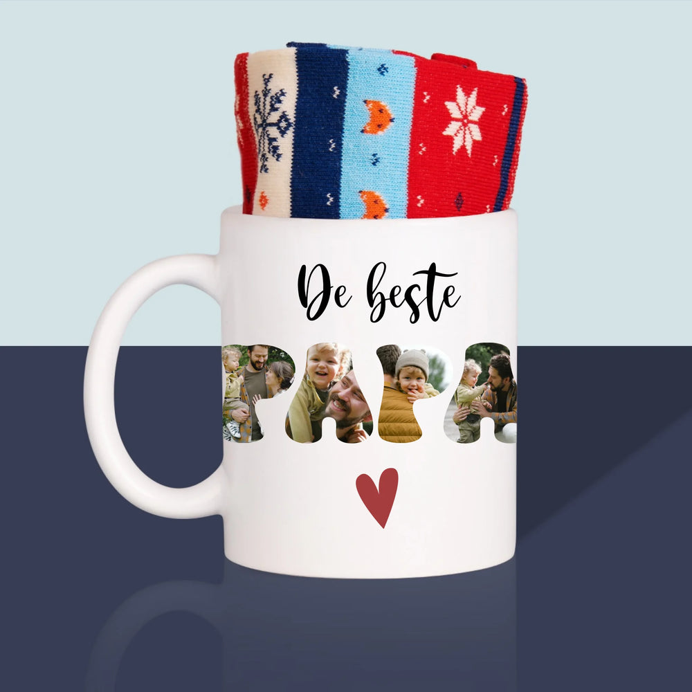 Foto En Handtekening: De Beste Papa Hartje - Wintersokken in een mok
