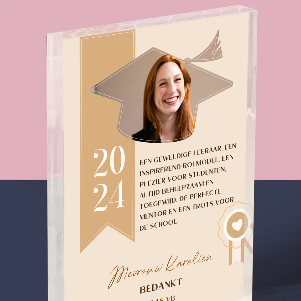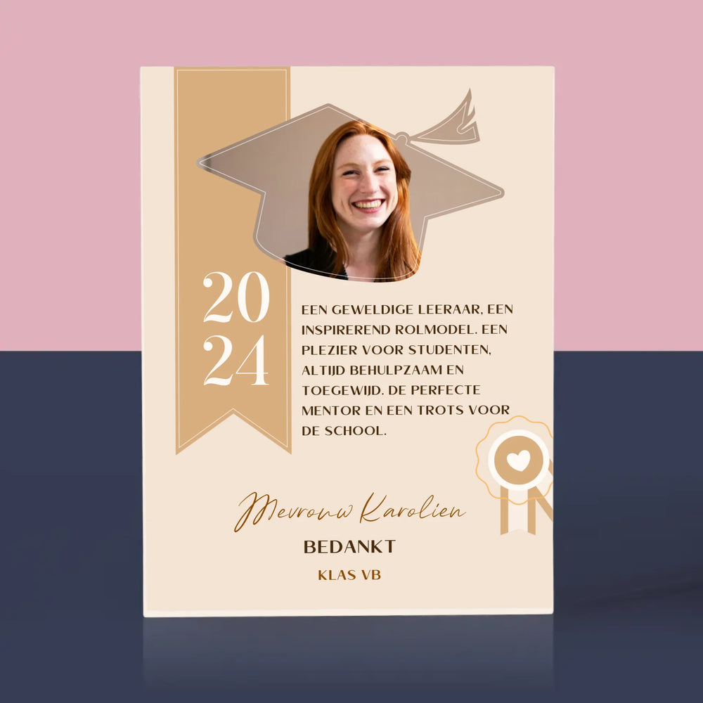 Foto En Handtekening: Diploma Voor De Leerkracht - Acryl blok - Verticaal