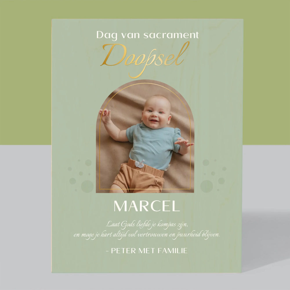 Foto En Handtekening: Doop Sacrament - Afdruk op hout