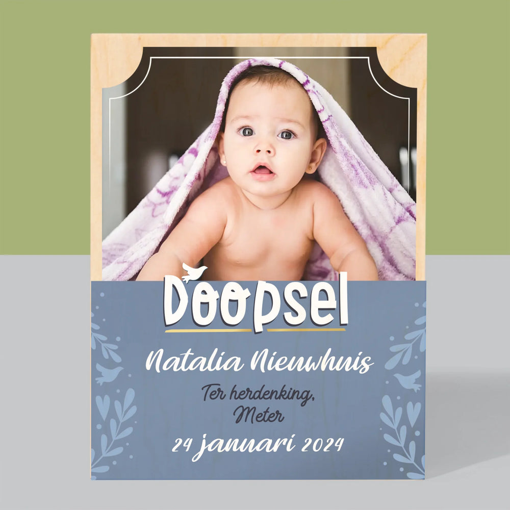 Foto En Handtekening: Doopsel - Afdruk op hout