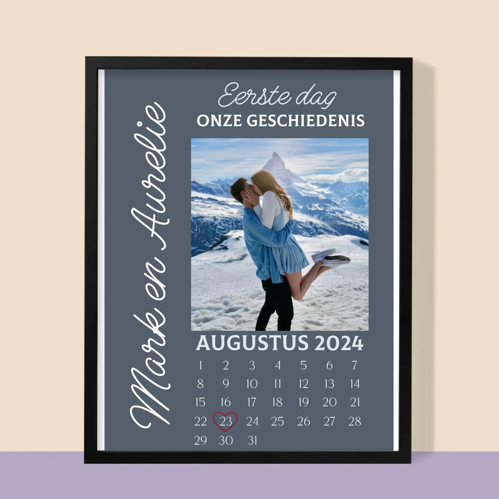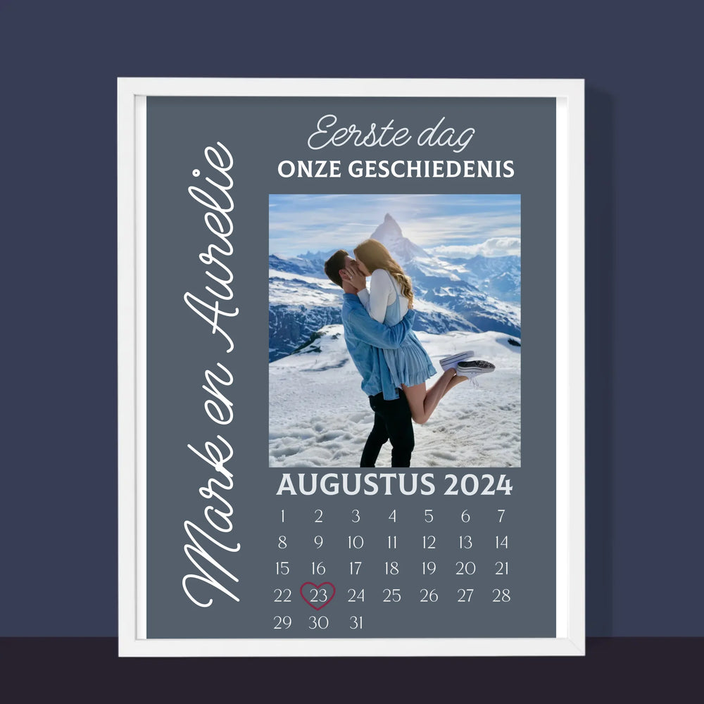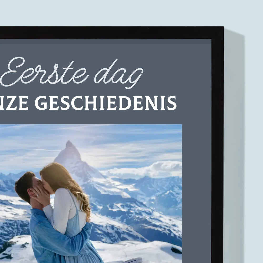 Foto En Handtekening: Eerste Dag Van Onze Geschiedenis - Afdruk met frame