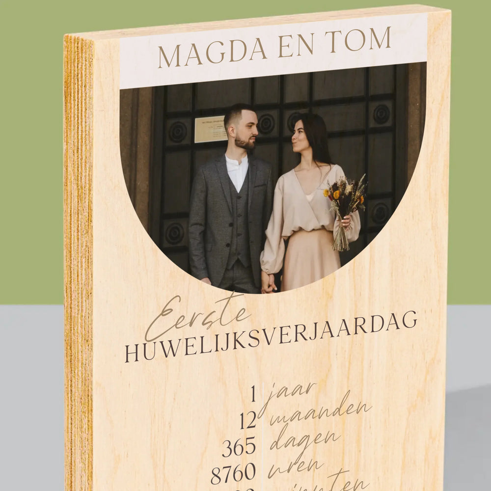 Foto En Handtekening: Eerste Huwelijksverjaardag - Afdruk op hout