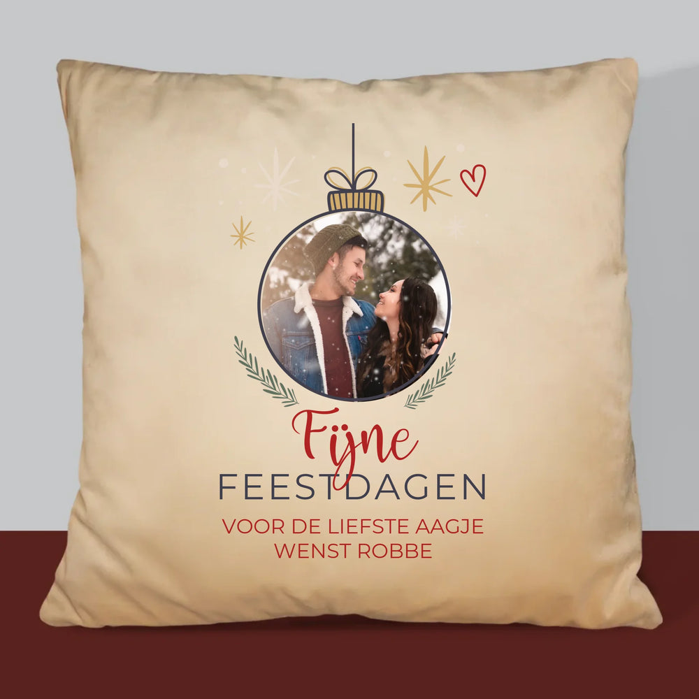 Foto En Handtekening: Fijne Feestdagen Kerstbal - Kussen
