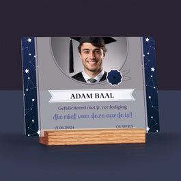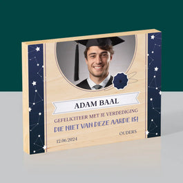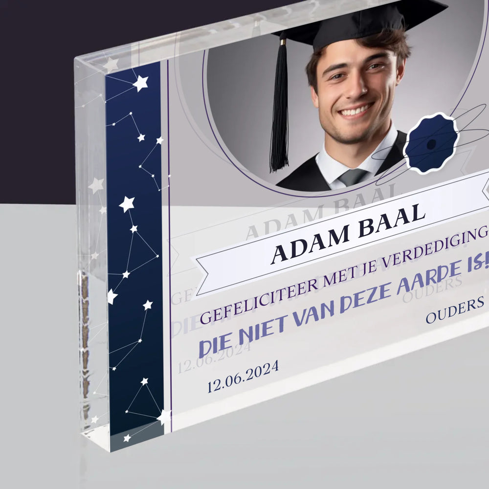 Foto En Handtekening: Gefeliciteerd Met Je Verdediging - Acryl blok - Horizontaal