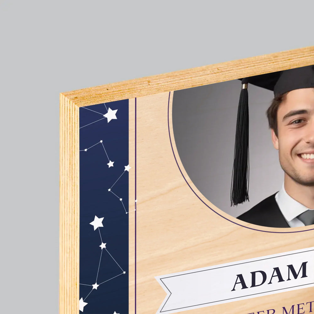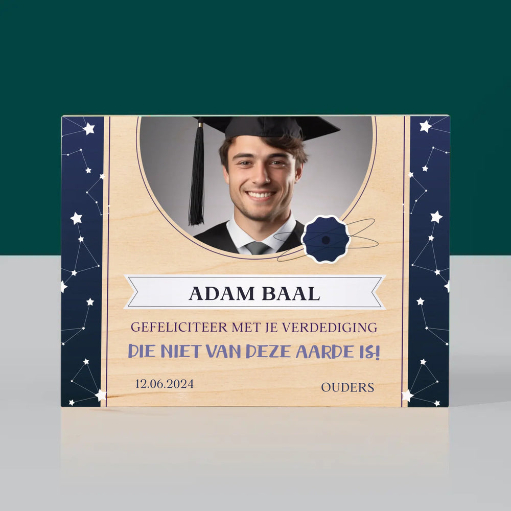 Foto En Handtekening: Gefeliciteerd Met Je Verdediging - Afdruk op hout