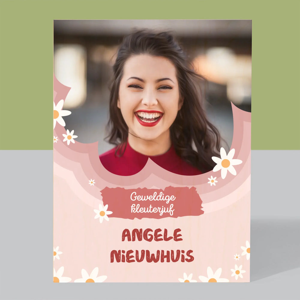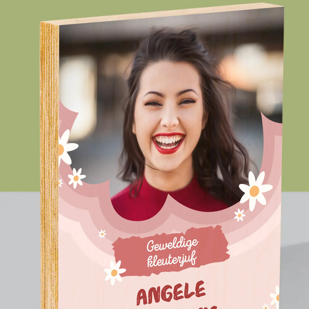 Foto En Handtekening: Geweldige Kleuterjuf - Afdruk op hout