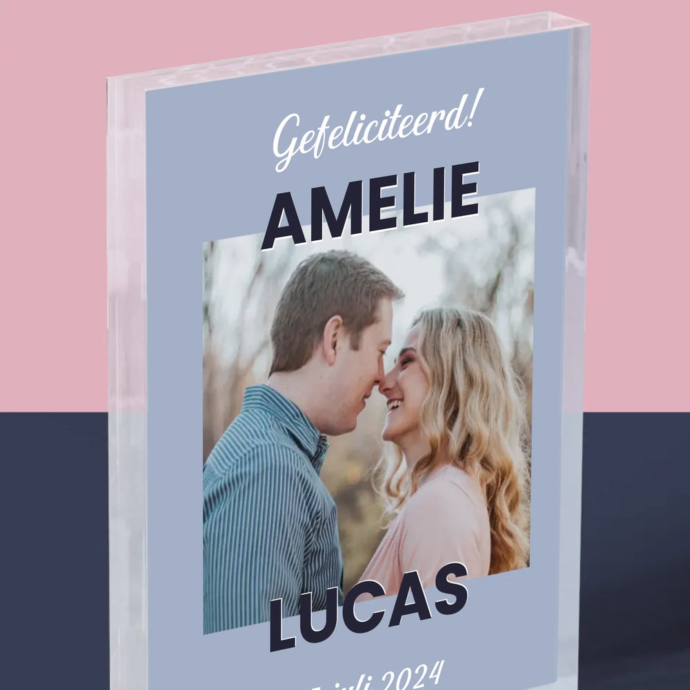 Foto En Handtekening: Huwelijkswensen - Acryl blok - Verticaal