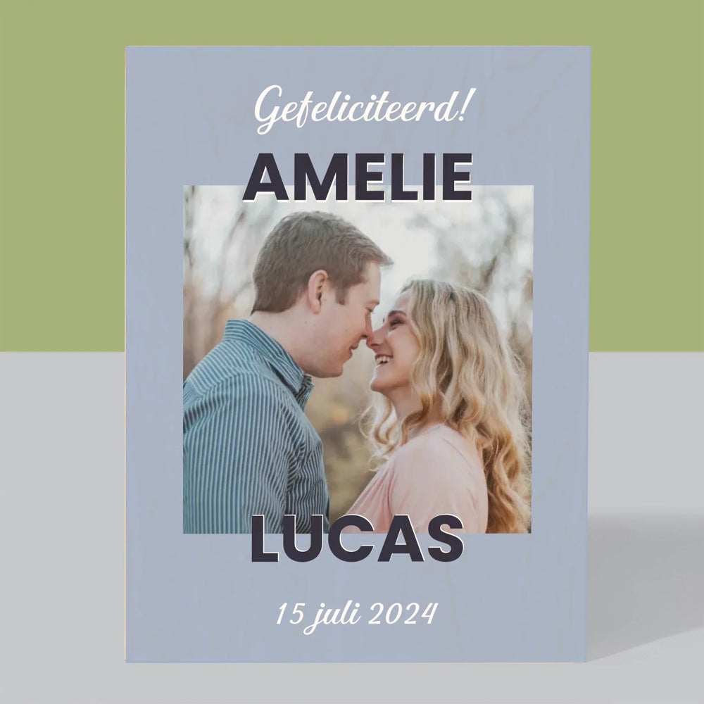 Foto En Handtekening: Huwelijkswensen - Afdruk Op Hout (Verticaal)