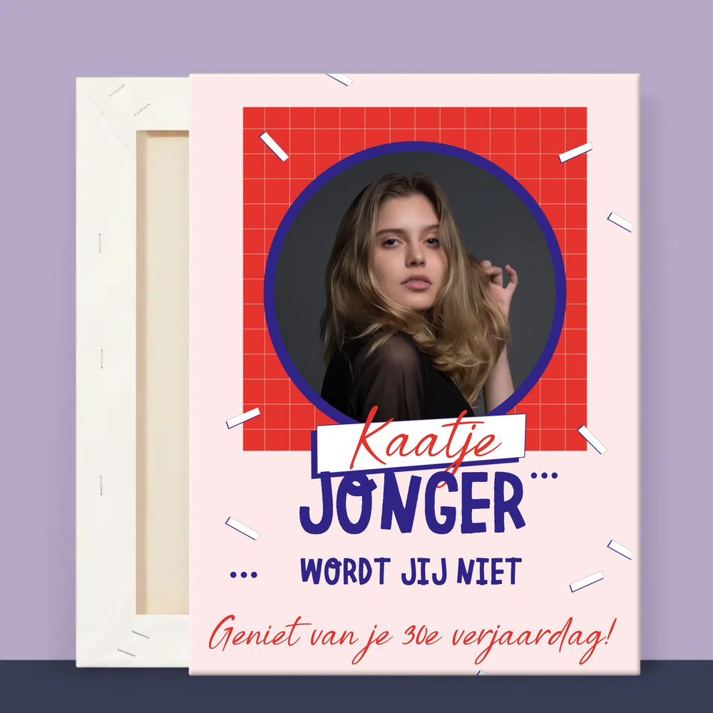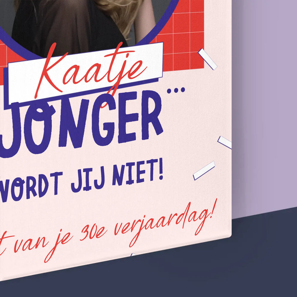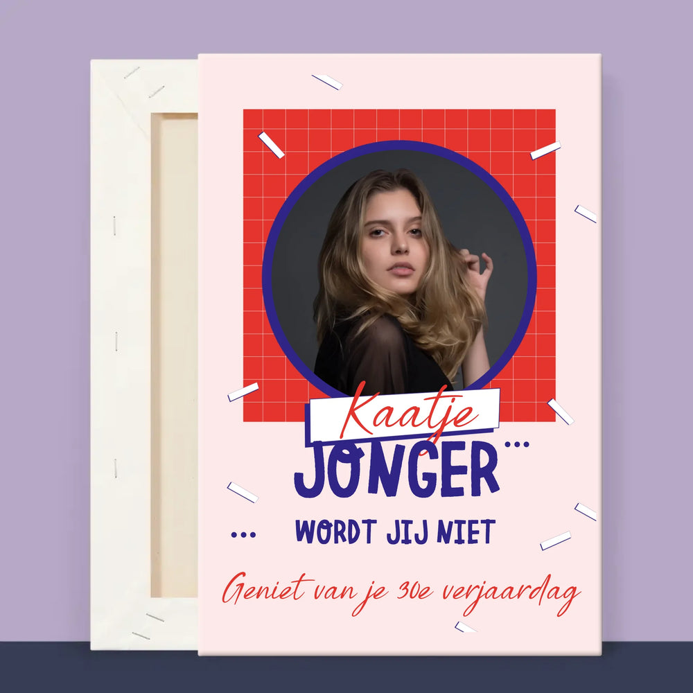 Foto En Handtekening: Jonger Wordt Jij Niet - Foto op canvas
