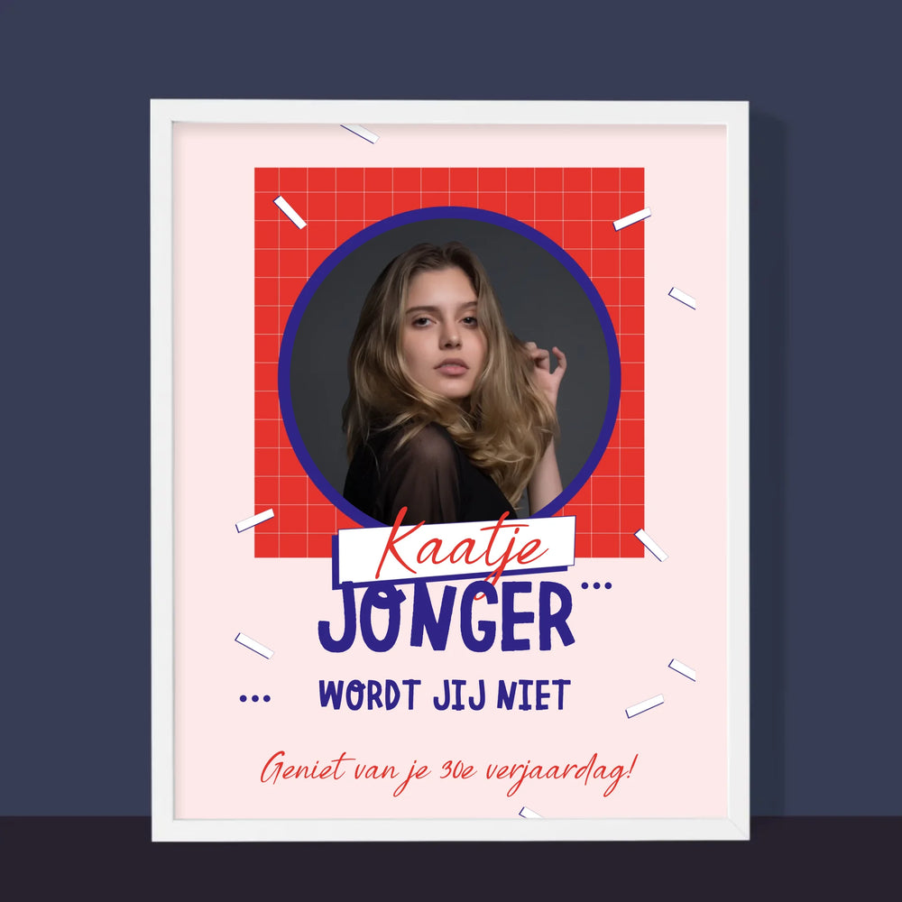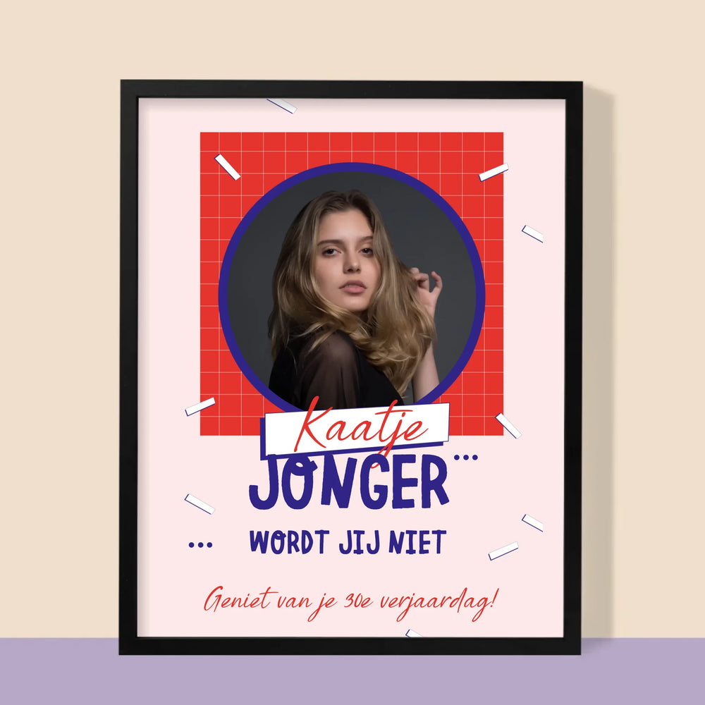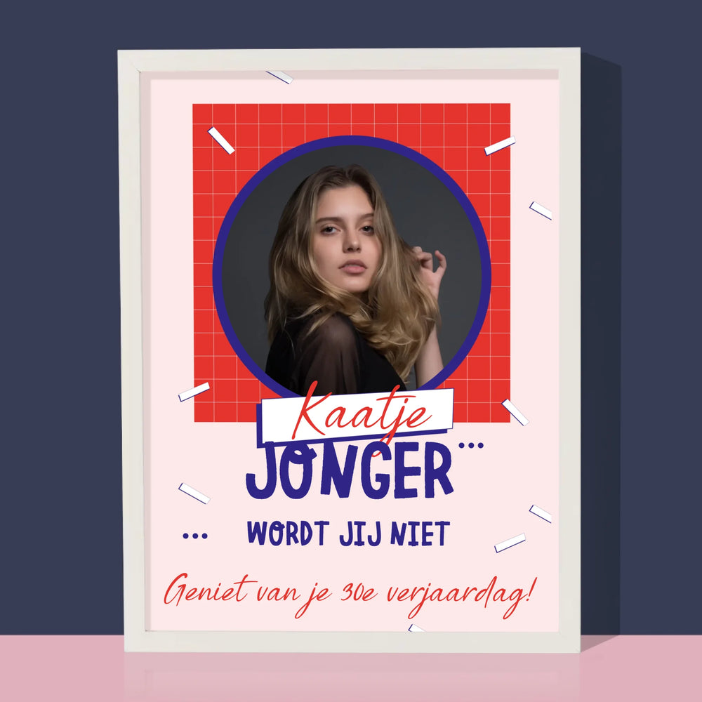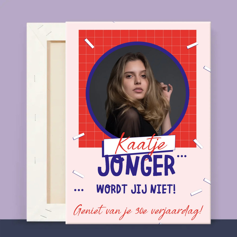 Foto En Handtekening: Jonger Wordt Jij Niet - Foto op canvas