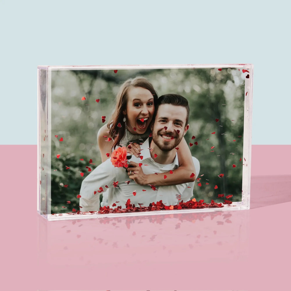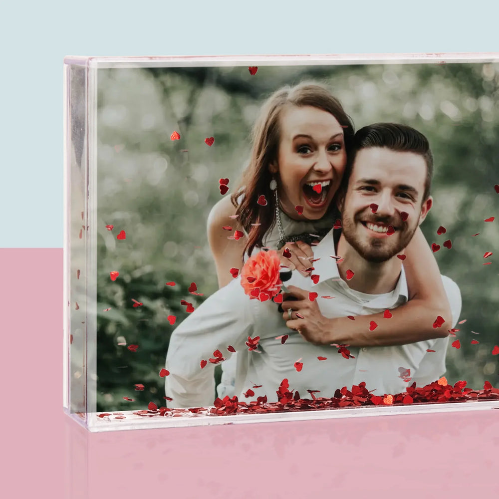 Gemaakt van transparant plastic, van binnen gevuld met water en confetti in de vorm van hartvormige bloemblaadjes!