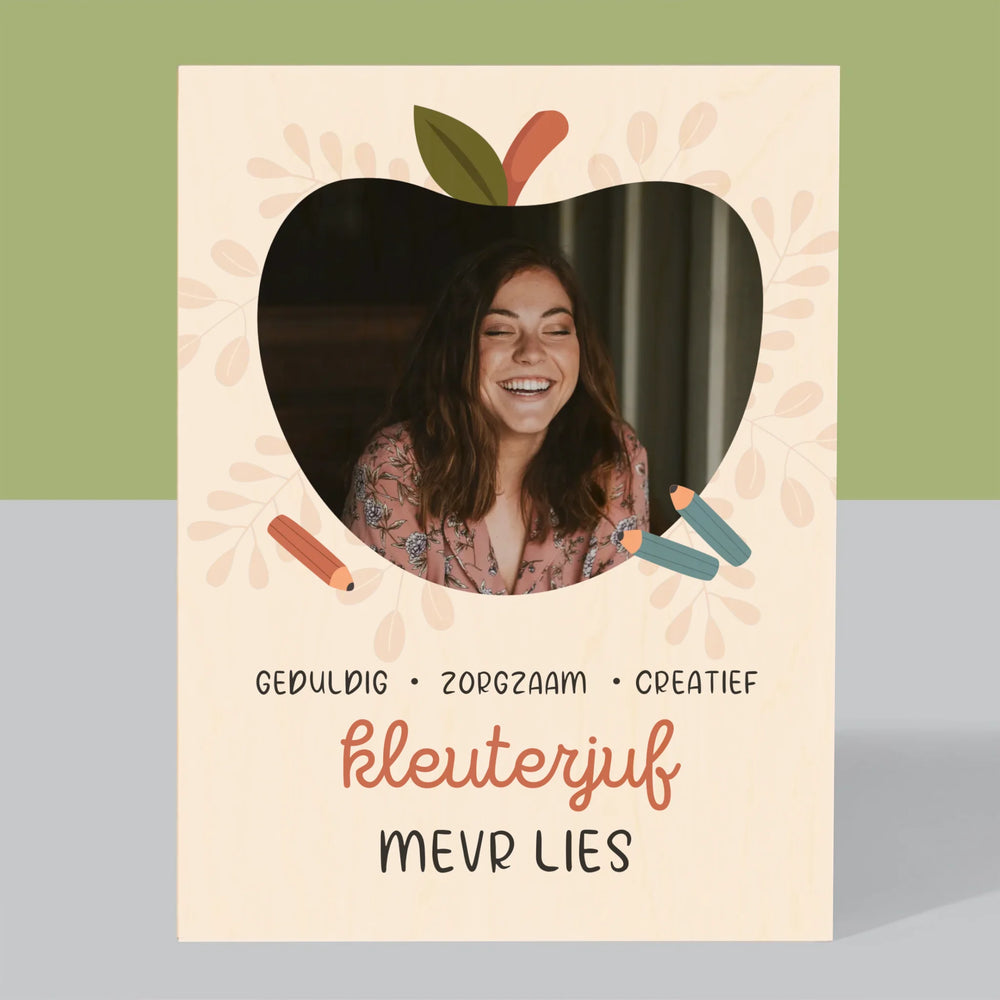 Foto En Handtekening: Kleuterjuf - Afdruk op hout