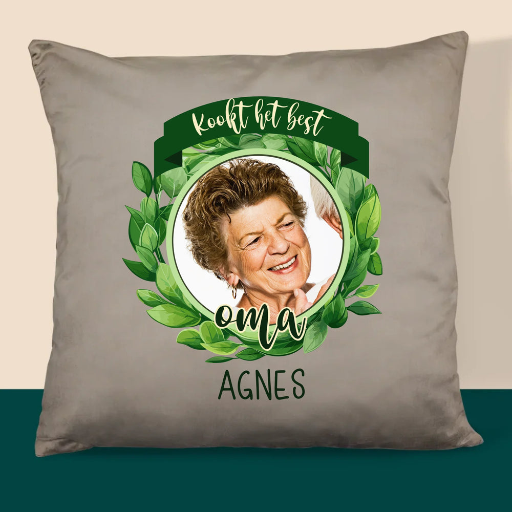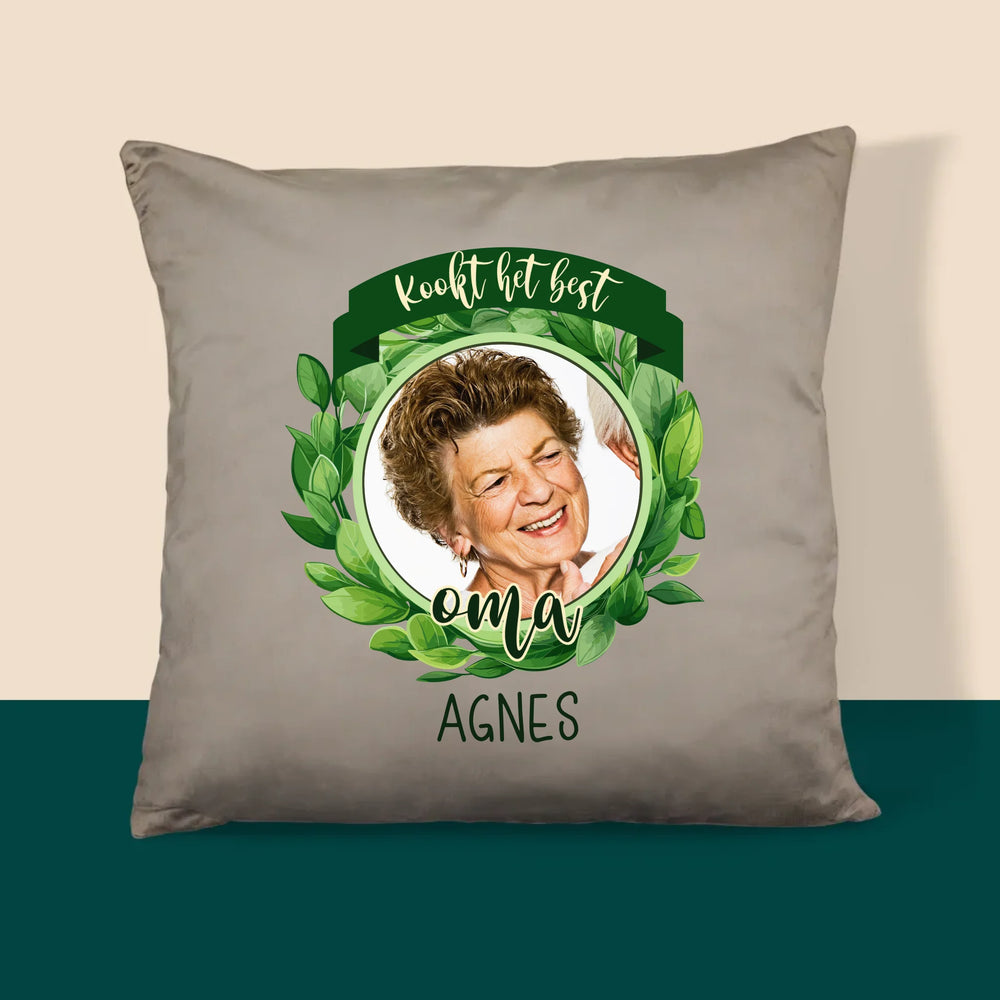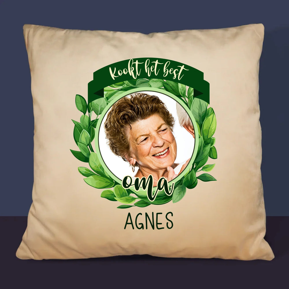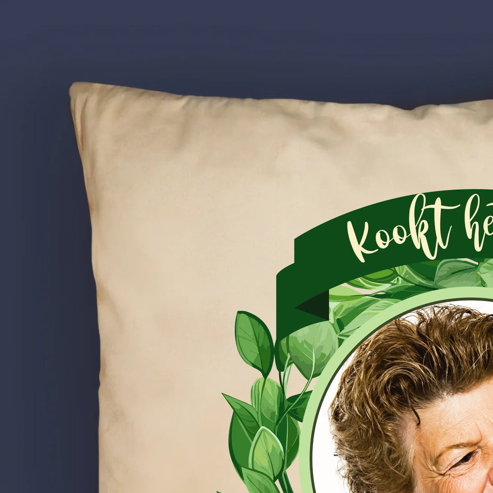 Foto En Handtekening: Kookt Het Best - Kussen (Foto)
