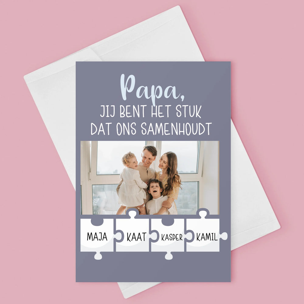 Foto En Handtekening: Papa, Jij Bent Het Stuk Dat Ons Samenhoudt - Wenskaart