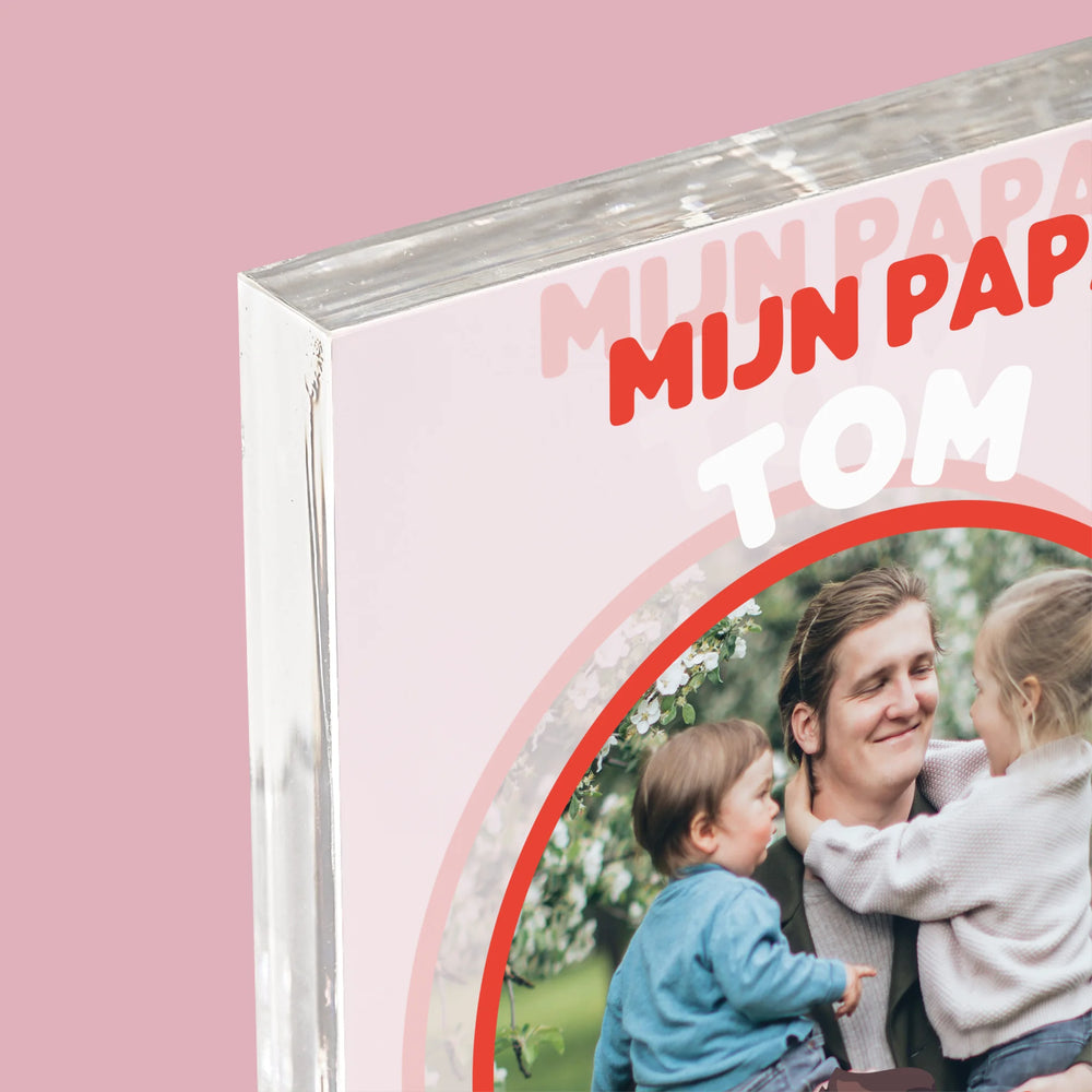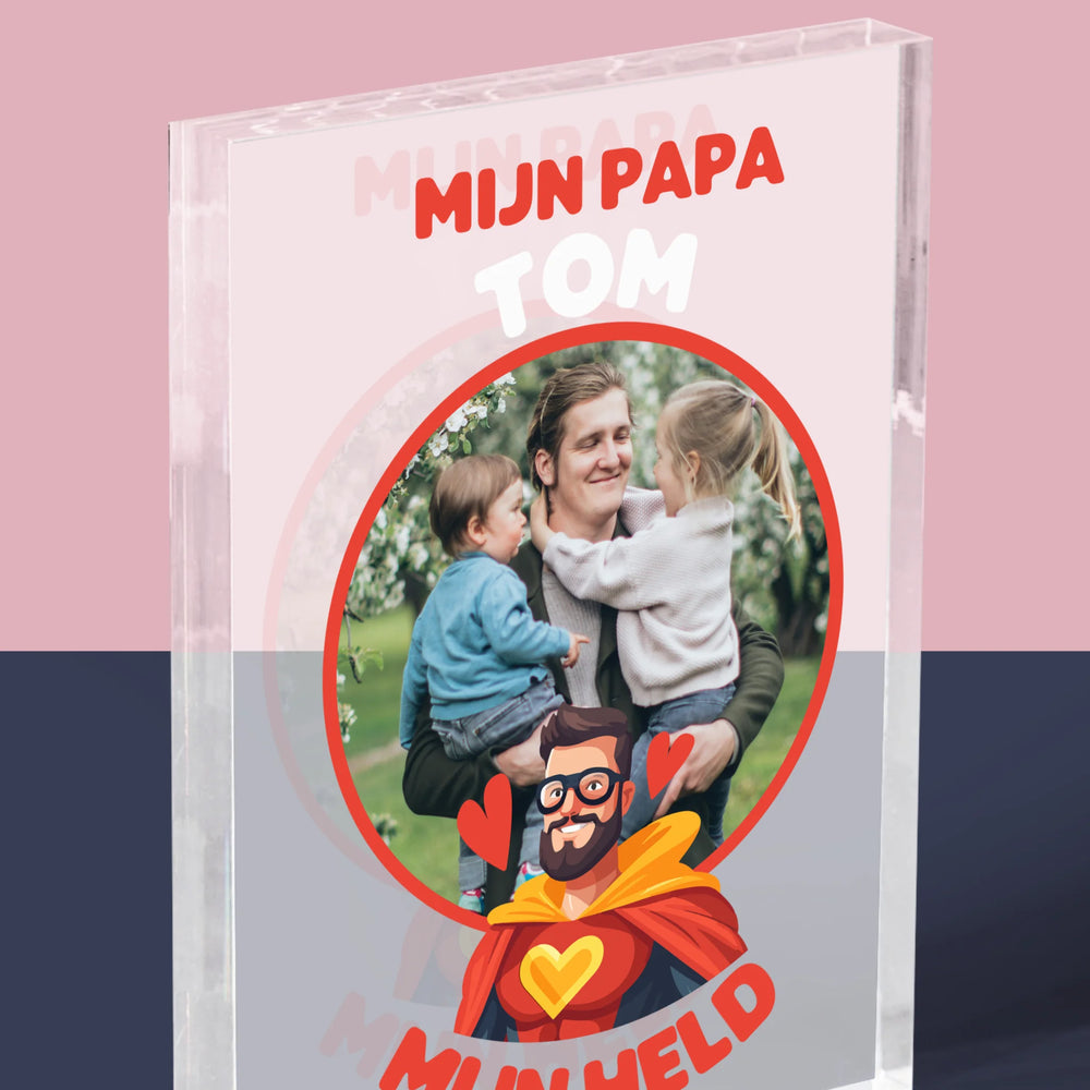 Foto En Handtekening: Papa, Mijn Held - Acryl blok - Verticaal