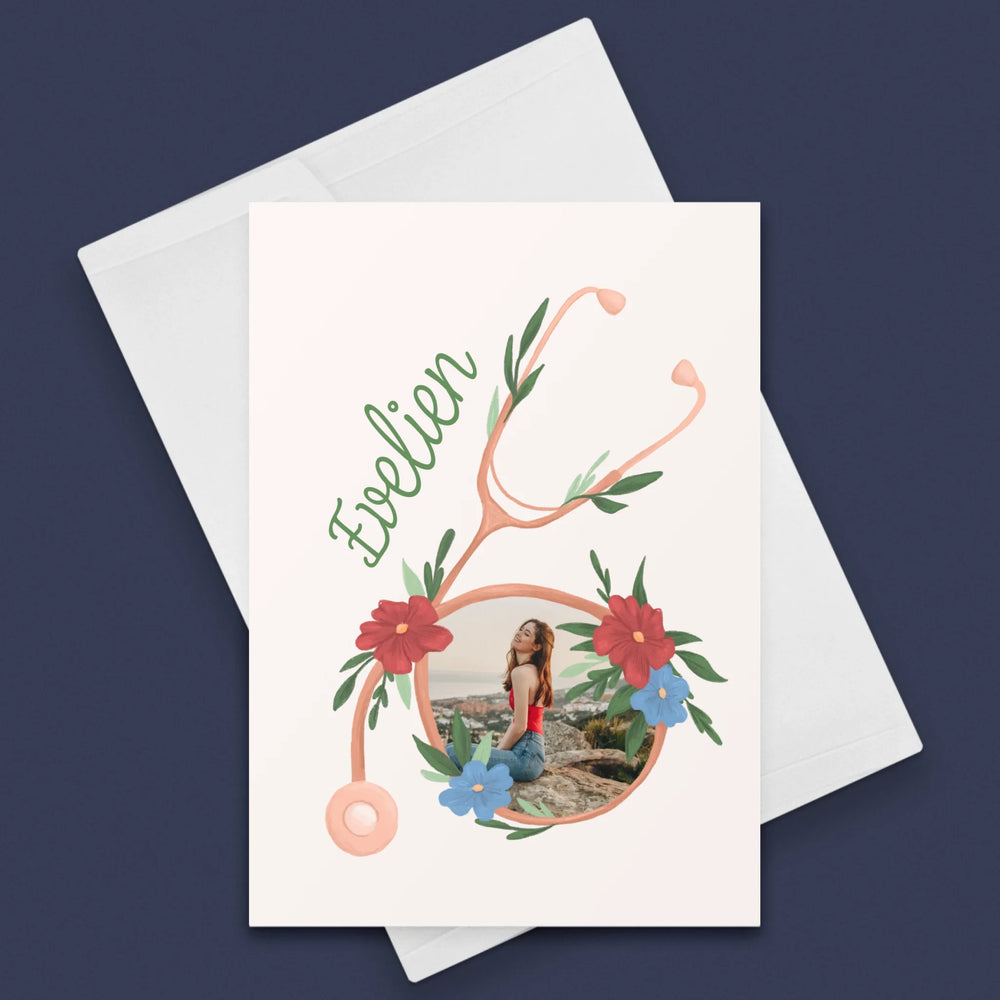 Foto En Handtekening: Stethoscoop Bloemen - Wenskaart
