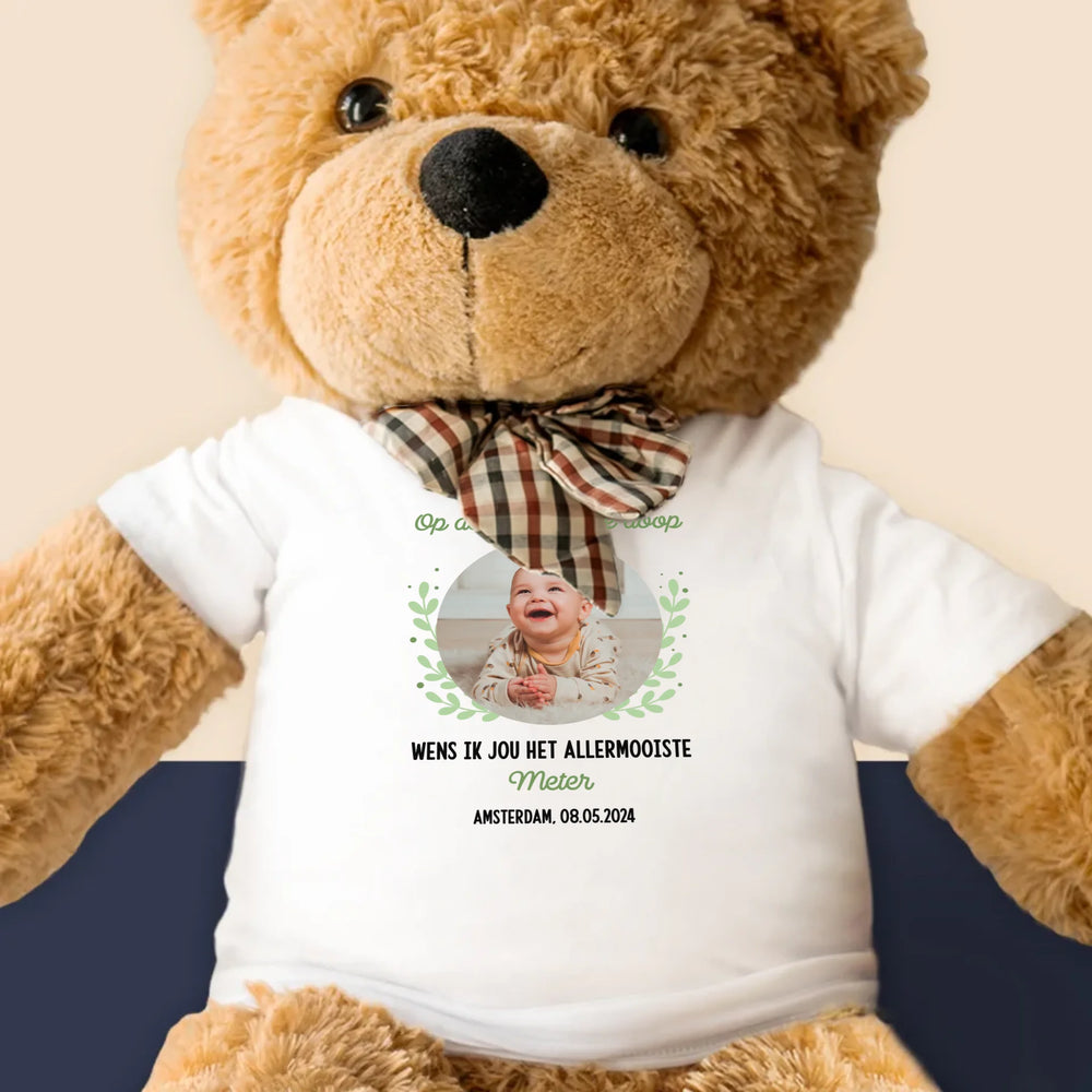 Grote knuffelbeer met jouw gekozen ontwerp.
